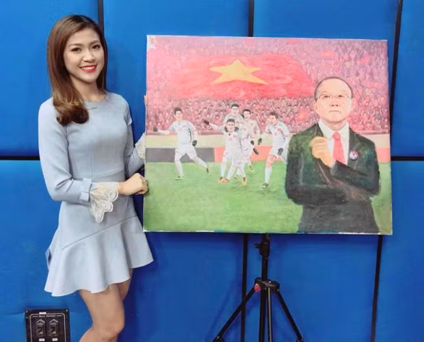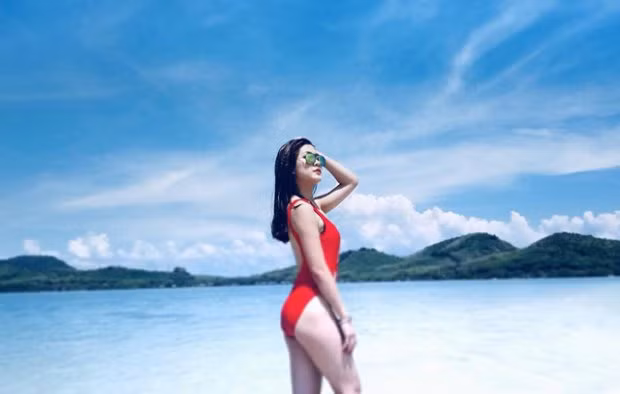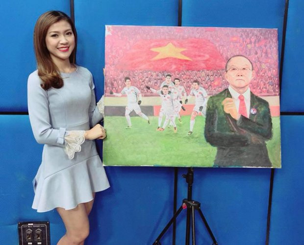 | MC Thu Hằng trong trang phục bikini khi dẫn chương trình ‘Tiên tri nước Nga’. |