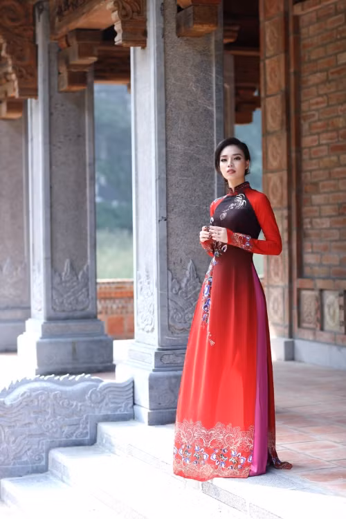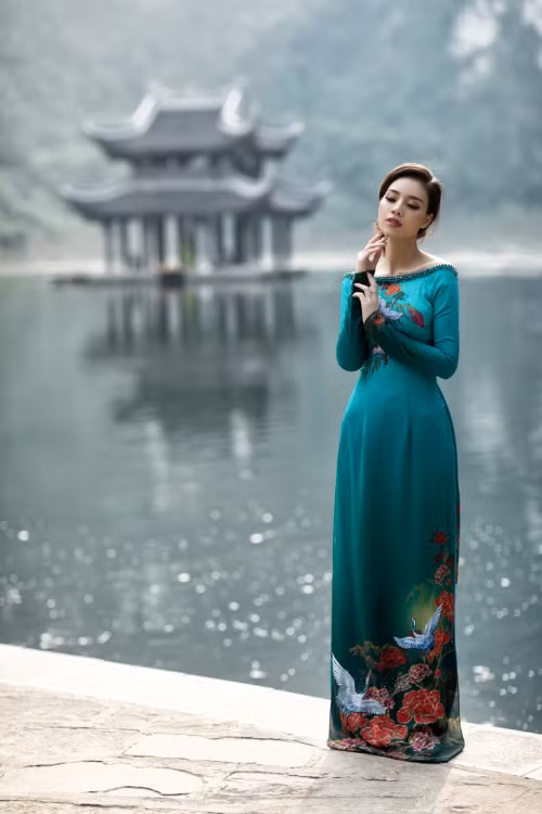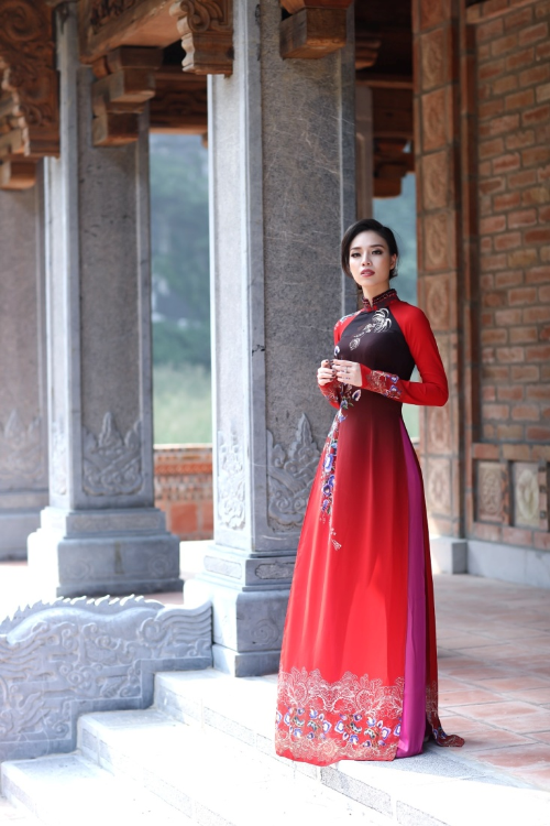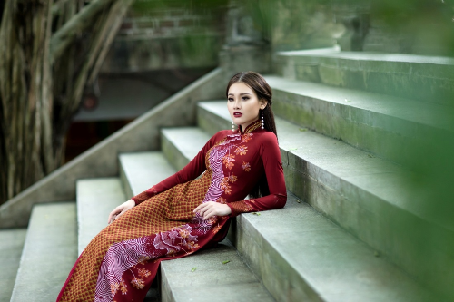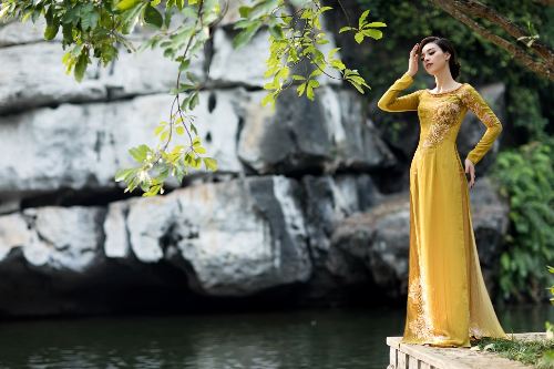 Chiếc áo dài là sự giao thoa của nghệ thuật chạm khắc và thời trang mang màu sắc cổ điển.