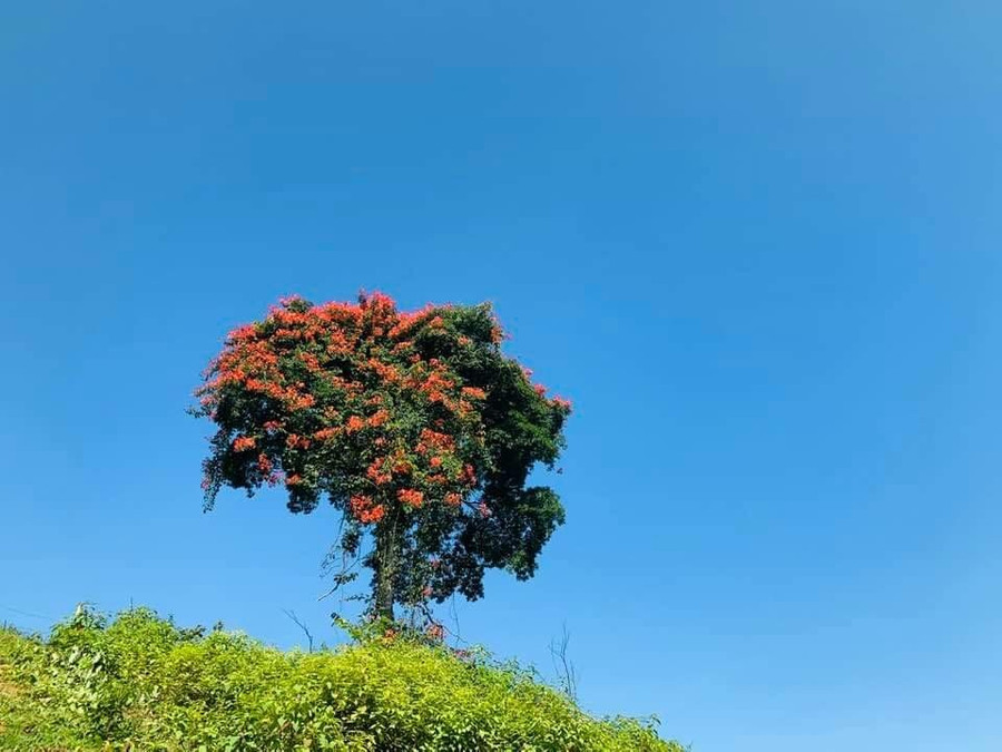 (GLO)- Cuối tháng 10, khi cao nguyên Gia Lai bước vào đầu mùa khô, sườn núi Ngô Sơn (xã Biển Hồ) bất ngờ bừng sáng bởi một loài hoa rừng đỏ như lửa. Từng chùm hoa dây leo ôm lấy những tán thông cổ thụ, nối nhau nhuộm thẫm lưng núi.