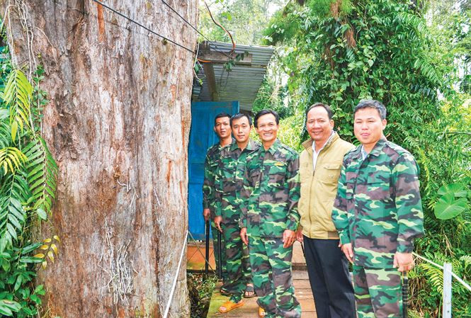 Cán bộ nhân viên BQL KBT với cây Thủy tùng 700 năm tuổi ở Ea Ran