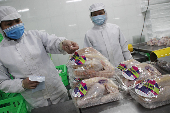 | Giá gà xuất chuồng vẫn dưới giá thành Dán tem truy xuất nguồn gốc thịt gà tại một nhà máy - Ảnh: NGUYỄN TRÍ Thông tin từ nhiều trại nuôi gà tại khu vực Đông Nam Bộ cho biết giá gà công nghiệp (lông trắng) bán ra tại chuồng hiện tăng nhẹ so với tuần trước, lên mức 21.000 đồng/kg. Tuy vậy, giá này vẫn thấp hơn giá thành chăn nuôi 3.000 đồng/kg, cộng với mức giá thấp kéo dài trước đó khiến người nuôi thua lỗ nặng. Tương tự, giá vịt bán ra tại chuồng hiện ở mức thấp, khoảng 30.000 - 40.000 đồng/kg tùy loại. Trao đổi với Tuổi Trẻ, ông Lê Văn Quyết - phó chủ tịch Hiệp hội Chăn nuôi gia cầm Đông Nam Bộ - nhận định giá gà ở mức thấp kéo dài do nhu cầu tiêu thụ giảm vì ảnh hưởng từ việc cách ly xã hội bởi COVID-19. Tuy vậy, giá gà dễ biến động nên có thể tăng nhanh nếu thị trường tiêu thụ tốt hoặc nguồn cung giảm. Cùng ngày, ghi nhận tại một số siêu thị ở TP.HCM cho thấy giá thịt gà vẫn đứng ở mức khá cao với đùi gà và cánh gà 75.000 - 90.000 đồng/kg, ức gà 65.000 - 73.000 đồng/kg, má đùi 45.000 đồng/kg... Theo một số siêu thị, giá thịt gà bán ra tại nhiều siêu thị cao hơn nhiều so với giá bán tại trại là do thịt gà tiêu thụ trong siêu thị có nguồn cung chủ yếu từ mô hình nuôi theo chuỗi, giá bán ký kết cố định với mức 23.000 - 25.000 đồng/kg. NGUYỄN TRÍ |