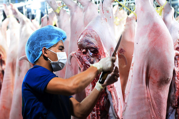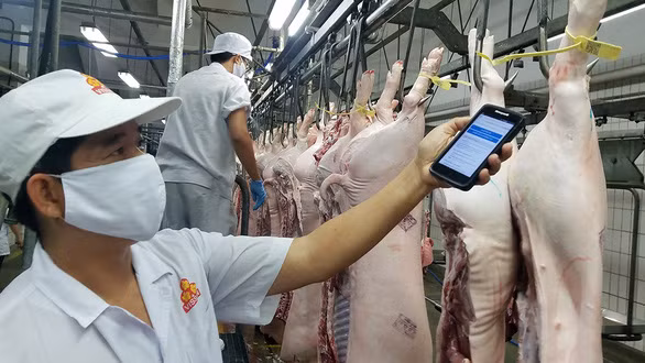 Truy xuất nguồn gốc thịt heo tại một nhà máy giết mổ - Ảnh: NGUYỄN TRÍ