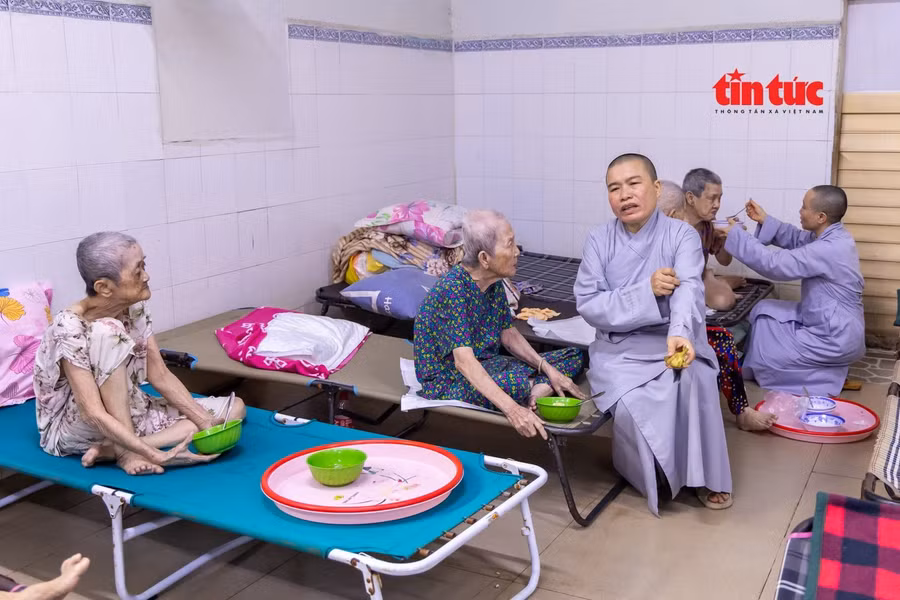 "Thật ra, tôi thấy công việc này không khó khăn lắm. Khi mình thương thì mọi việc đều nhẹ nhàng. Tôi xem chùa như nhà, các cụ như người thân của mình. Hằng ngày, tôi đút cơm cho các cụ, phụ các sư cô tắm rửa, thay tã, vệ sinh cho những cụ yếu hoặc nằm một chỗ”, bà Phan Thị Ngọc Nhung chia sẻ thêm.