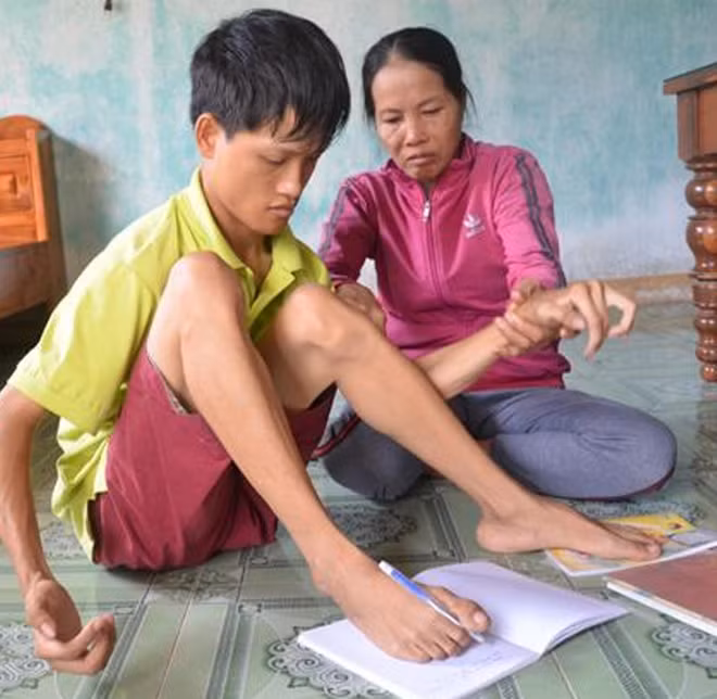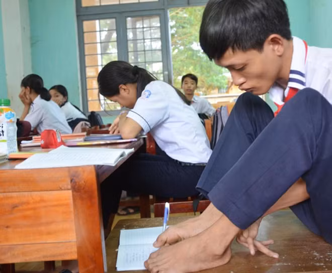 | Em mong ước sau này làm nghề công nghệ thông tin, vì đôi chân có thể sử dụng được máy tính, và cũng mong cuộc sống tốt đẹp hơn, mẹ không còn phải đi làm thuê vất vả Nguyễn Tấn Sang, 22 tuổi, hiện là học sinh lớp 8C, Trường THCS xã Đức Phú |