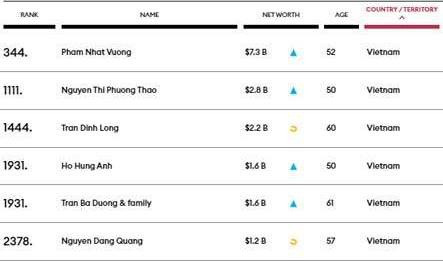Tạp chí Forbes (Mỹ) vừa công bố danh sách tỷ phú thế giới năm 2021. Trong đó, Việt Nam lần đầu tiên có 6 đại diện.