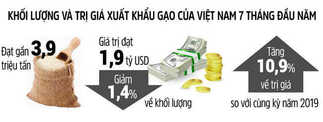 Thái Lan sản xuất hơn 20 triệu tấn gạo/năm, trong đó khoảng 10 triệu tấn để tiêu dùng trong nước và phần còn lại để xuất khẩu. Năm 2019, quốc gia Đông Nam Á này xuất khẩu 7,58 triệu tấn gạo, giảm 32% về lượng và 25% về giá trị so với năm trước.
