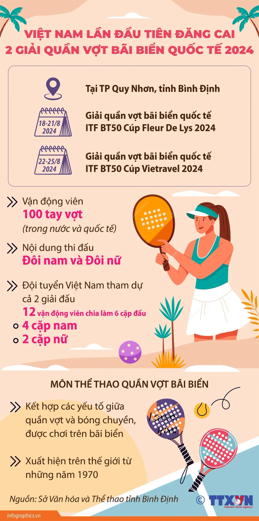 Hai giải gồm Giải quần vợt bãi biển quốc tế ITF BT50, Cúp Fleur De Lys 2024 và Giải quần vợt bãi biển quốc tế ITF BT50, Cúp Vietravel 2024.