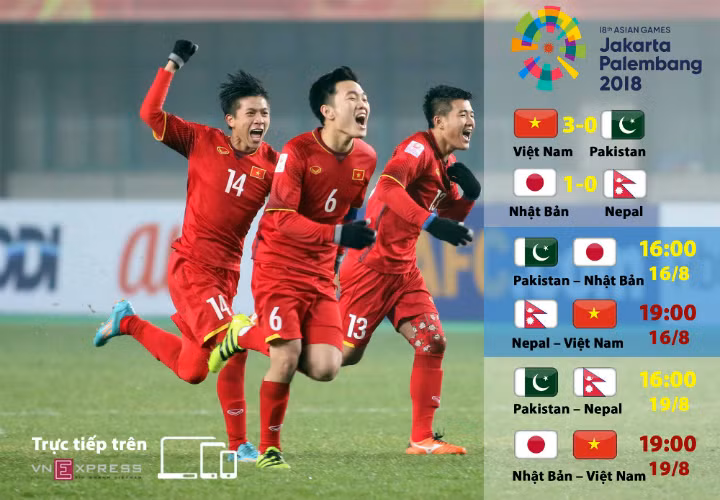 * Trận Việt Nam - Nepal diễn ra lúc 19h thứ Năm 16/8, theo giờ Hà Nội.