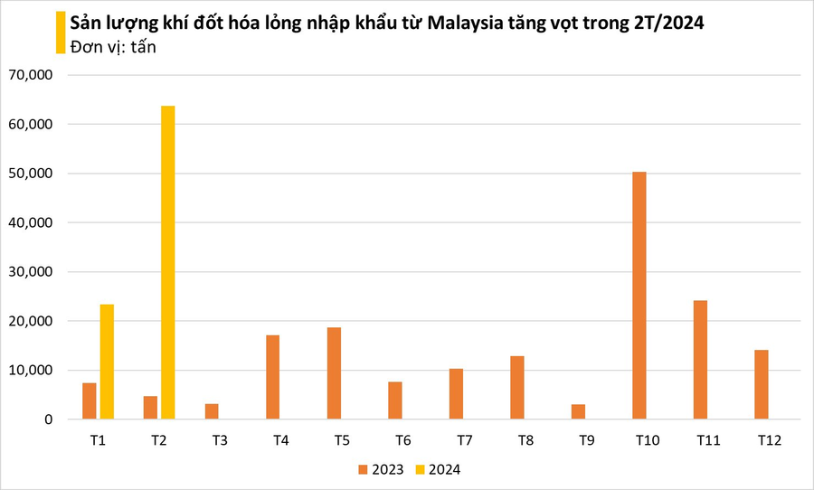 Cụ thể, trong tháng 2, các doanh nghiệp Việt Nam nhập khẩu từ thị trường Malaysia 63.686 tấn LPG, kim ngạch đạt 42,6 triệu USD, tăng đột biến 1.243% về lượng và tăng 941% về giá trị so với cùng kỳ năm trước.
