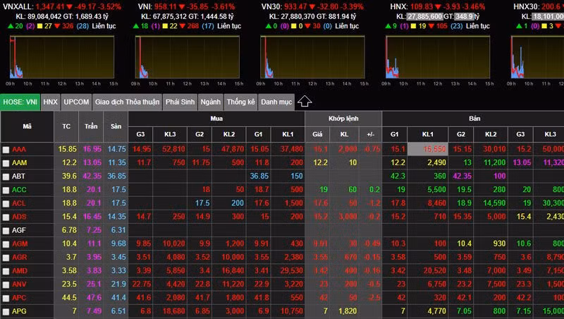 Áp lực bán tháo tăng vọt trên diện rộng ngay khi thị trường mở cửa đã khiến hầu hết các cổ phiếu giảm giá. Chỉ số VN-Index có lúc giảm hơn 40 điểm (-4%) về gần ngưỡng 950 điểm. HNX-Index giảm mạnh gần tương tự.