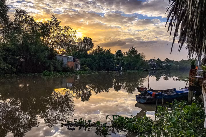 Mặt trời mọc trên Đồng bằng sông Cửu Long: Sống trong một căn nhà ven sông của người dân địa phương và đón ngày mới với cảnh tượng tuyệt đẹp này là một trải nghiệm khó quên với bất kì ai.