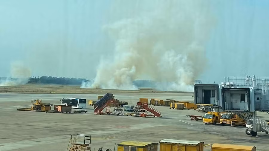 Hình ảnh được cho là sự cố máy bay bị nổ lốp khi chuẩn bị cất cánh.