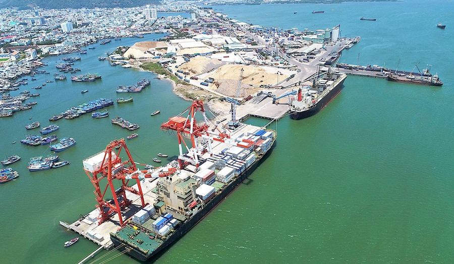 Vị trí cảng Quy Nhơn thuận lợi cho tàu neo đậu và xếp dỡ hàng quanh năm. Ảnh: Nguyên Dũng