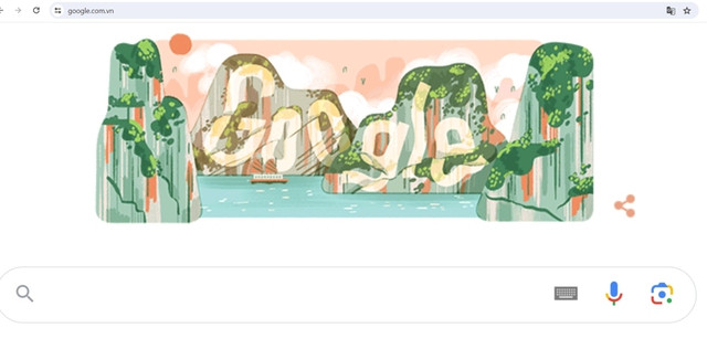 Ngày 17.12, trên trang chủ Google Việt Nam đưa lên hình vẽ minh họa (doodle) vinh danh vịnh Hạ Long của Việt Nam.