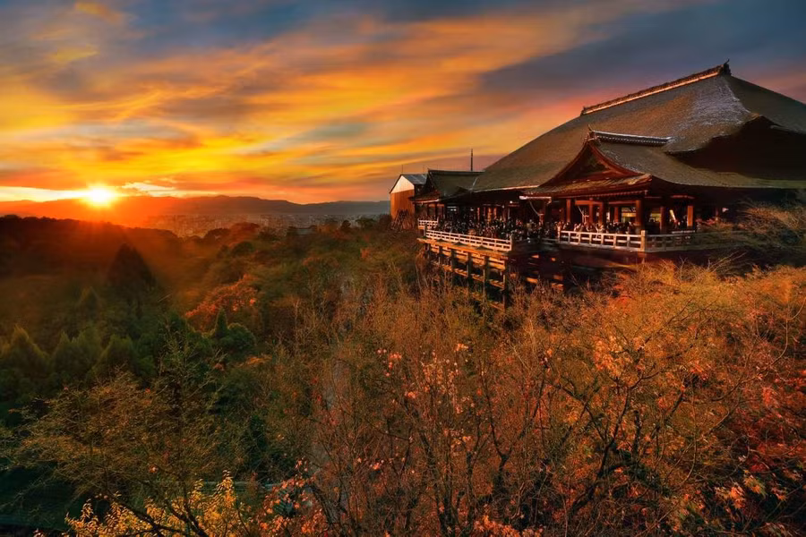 Kiyomizu-dera là địa danh mà du khách không thể bỏ qua khi đến tham quan cố đô Kyoto, Nhật Bản. Mỗi năm, ngôi đền đón khoảng 3 triệu lượt khách. Ngôi đền xếp thứ 8, sau vịnh Hạ Long của Việt Nam. Nơi ngắm mặt trời lặn đẹp nhất là cổng phía tây Sai-mon của ngôi đền.