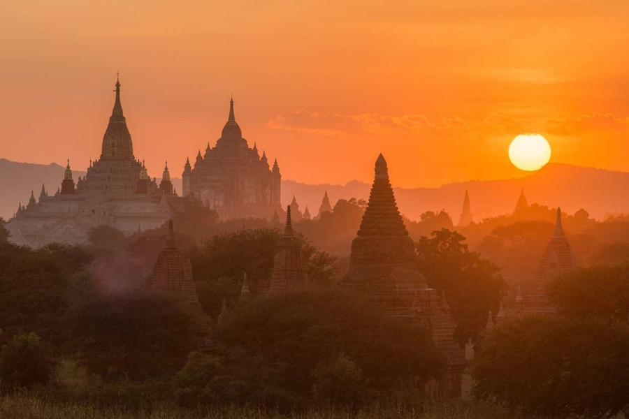 Thành phố cổ của Myanmar nổi tiếng khắp thế giới với hình ảnh những ngôi đền ẩn hiện trong làn sương mờ vào sáng sớm. Cuối ngày, khi mặt trời lặn xuống, những tia nắng cuối cùng len lỏi tạo thành đường viền cho hàng nghìn ngôi đền và chùa cổ.