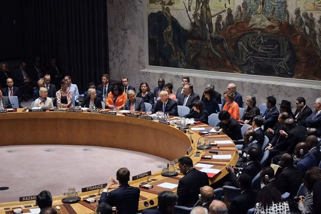 Hội đồng Bảo an Liên Hợp Quốc có 15 ủy viên, bao gồm 5 ủy viên thường trực - Anh, Mỹ, Trung Quốc, Nga và Pháp có quyền phủ quyết.