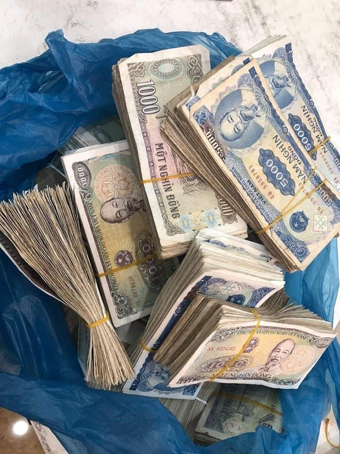 Bao tải tiền của vợ chồng cụ ông 78 tuổi chưa toàn tiền mệnh giá từ 1.000-20.000 đồng