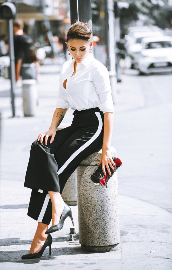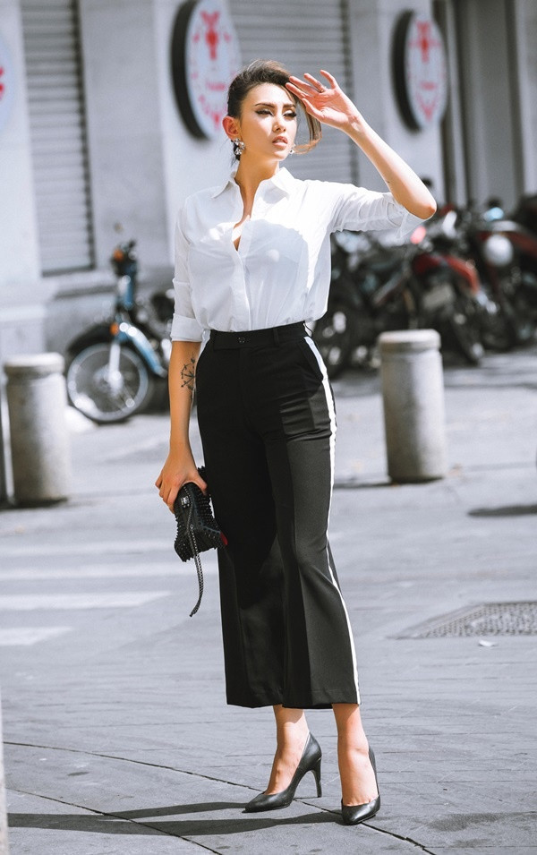 Sơ mi trắng và quần suông đen là hai món đồ cơ bản của giới văn phòng.