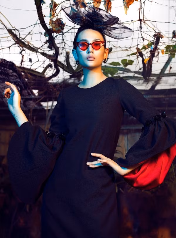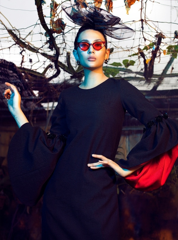 Xuyên suốt bộ sưu tập là gam màu đen, được thể hiện trên các chất liệu như tweed, taffeta…