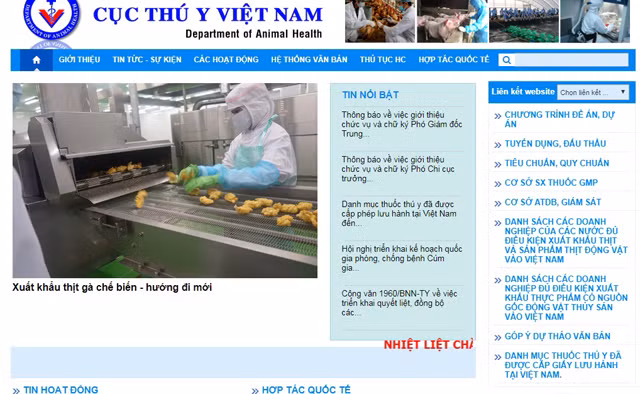 Website chính thức của Cục Thú y hoàn toàn không có một thông tin gì về dịch tả lợn châu Phi.