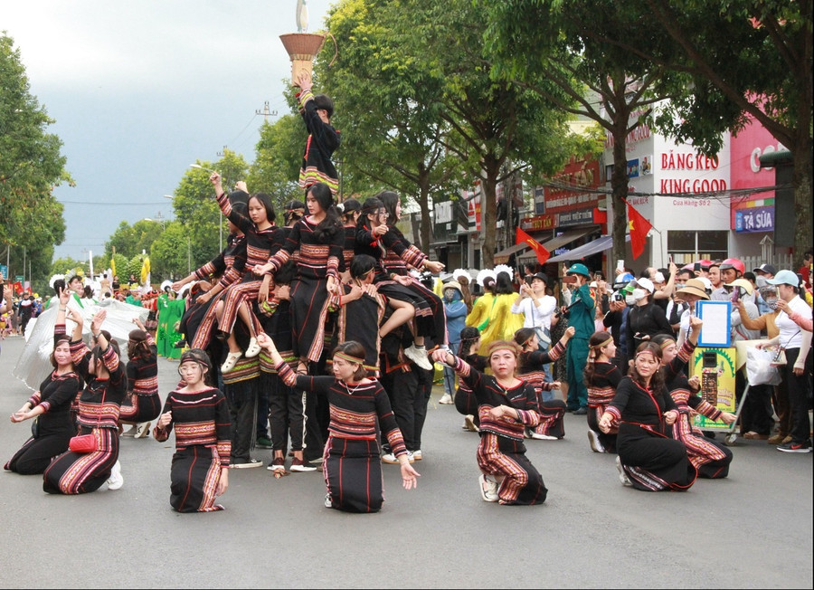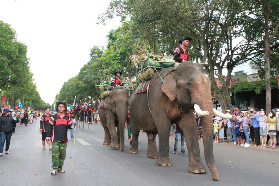 Ngoài ra, lễ hội đường phố thể hiện sôi động, cuốn hút với các tiết mục diễu hành, múa hoa… Trong buổi diễu hành còn có 2 chú voi từ H.Lắk đến tham gia thồ sầu riêng, khiến người dân, du khách thích thú.