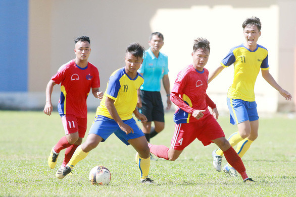 Cầu thủ Đồng Tháp (áo sậm) trong trận hòa Vĩnh Long ở Giải U21 quốc gia 2019 - Ảnh: DƯƠNG THU