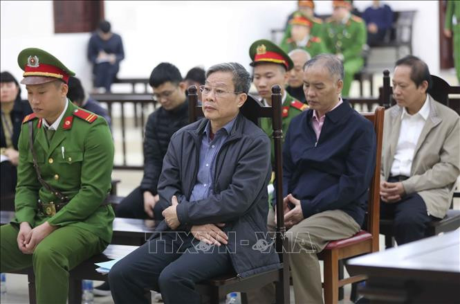 Bị cáo Nguyễn Bắc Son (cựu Bộ trưởng Bộ Thông tin và Truyền thông) và các bị cáo tại phiên tòa. Ảnh: Doãn Tấn/TTXVN