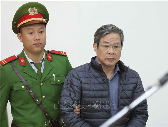 Cảnh sát dẫn giải bị cáo Nguyễn Bắc Son (cựu Bộ trưởng Bộ Thông tin và Truyền thông). Ảnh: Doãn Tấn/TTXVN