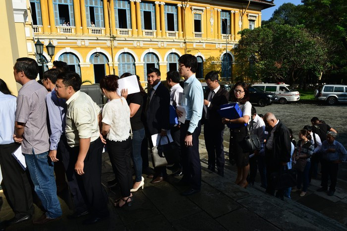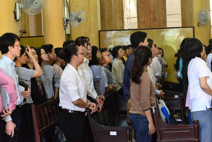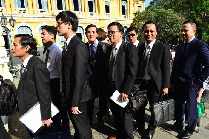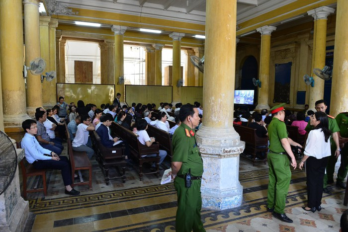 | Hơn 333 cá nhân, tổ chức được triệu tập đến tòa 8h, hàng dài những người được triệu tập đến tòa vẫn đang làm thủ tục để vào trong. Có hơn 333 cá nhân, tổ chức có quyền và nghĩa vụ liên quan, người làm chứng được triệu tập đến tòa. Hơn 60 luật sư tham gia bào chữa cho 26 bị cáo. Theo quan sát của Zing.vn, có khoảng 100 người đã vào trong phòng dự khán. Bên ngoài, những người tới tòa đang xếp hàng dài từ cửa phòng xử tới giữa sân. |