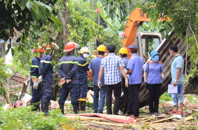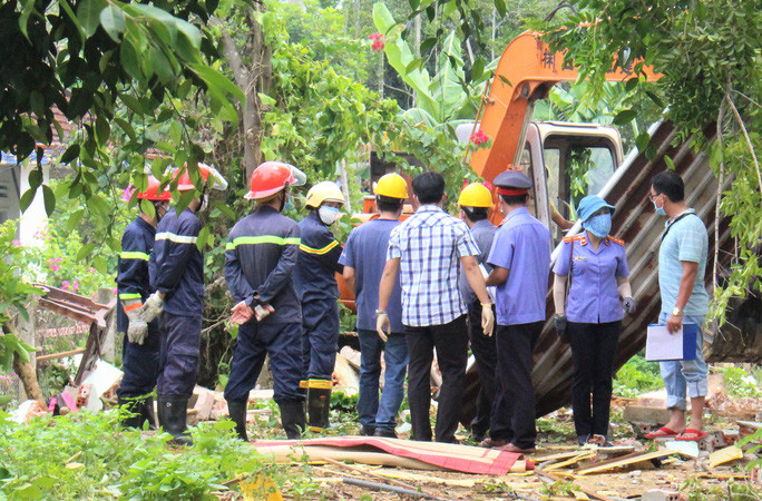 Theo ghi nhận của phóng viên, ngoài công an, viện kiểm sát, lực lượng quân sự cũng được điều động đến hiện trường để hỗ trợ công tác điều tra. Đến khoảng 14 giờ chiều 3-9, nhiều bộ phận thi thể của 2 vợ chồng ông N.M. (63 tuổi) và bà N.T.L. (55 tuổi) đã được đưa ra khỏi đống đổ nát.
