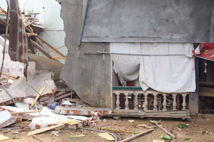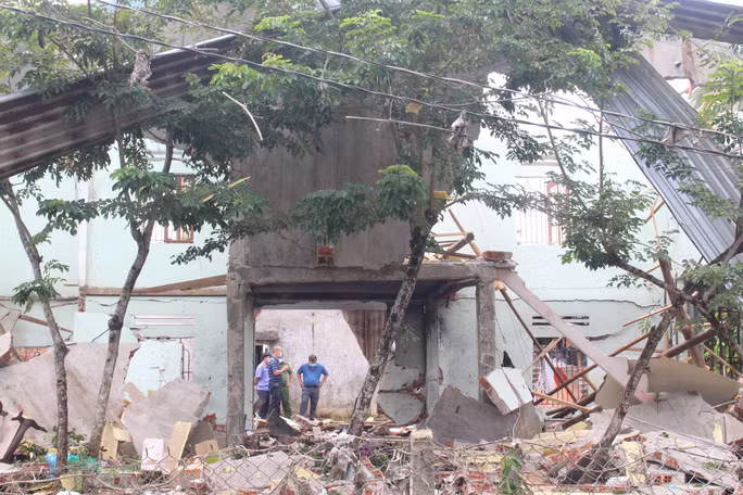 | Căn nhà nạn nhân bị đổ sập sau vụ nổ |