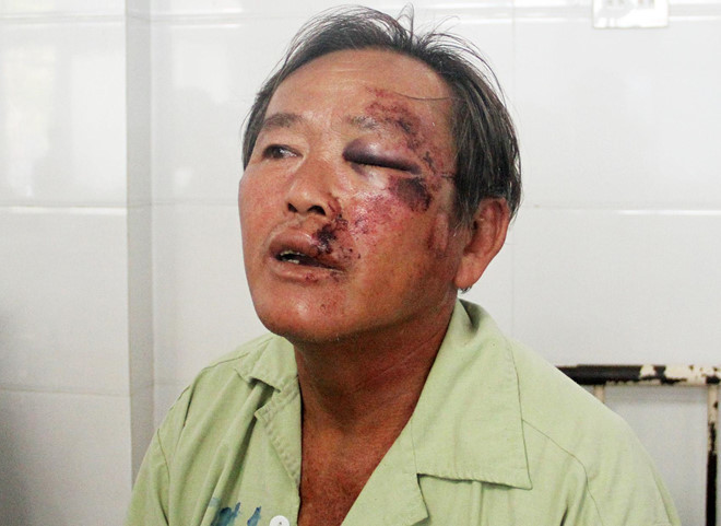 Ông Nguyễn Văn Tỵ (ngụ phường Thị Nại, TP Quy Nhơn) bị thương nặng, nạn nhân sống sót trong vụ tai nạn xe Lexus lao vào đám tang. Ảnh: Minh Hoàng.