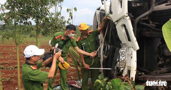 Chiếc xe tiếp tục chạy cách hiện trường gần 1km, lái xe Bền cho xe lao xuống lề đường để xe tự lật.