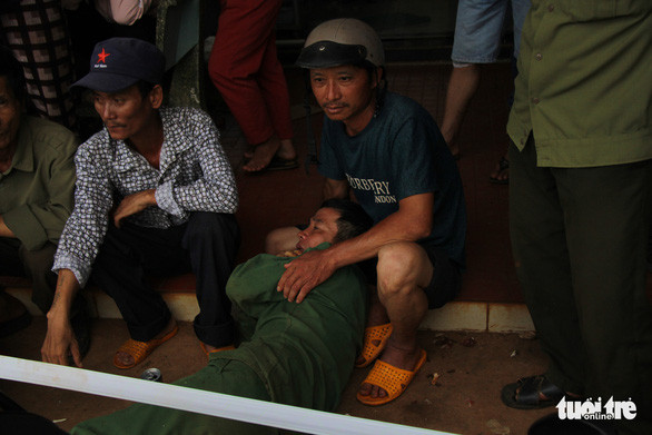 Ông Huỳnh Ngọc Hải (Đắk Rla, Đắk Mil) nằm khóc bên thi thể vợ tại hiện trường - Ảnh: TRUNG TÂN