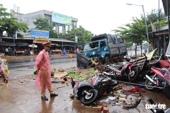 Sau khi tông vào đuôi xe tải Đắk Lắk, xe Bền tiếp tục va chạm với một xe tải cùng chiều phía trước khiến xe này cũng văng vào lề đường, lùa thêm 4 xe máy bên đường và một số nạn nhân bị thương.