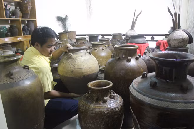 Ngoài đồng nghiệp và những người thân thích, ít ai biết Đặng Quốc Huy (36 tuổi, ngụ phường Tân Tiến, thành phố Buôn Ma Thuột, Đắk Lắk) có bộ sưu tập “hoành tráng” về ché cổ. Cũng không nhiều người nhìn thấy tất cả những chiếc ché được anh chắt chiu mua lại từ tiền lương của mình.