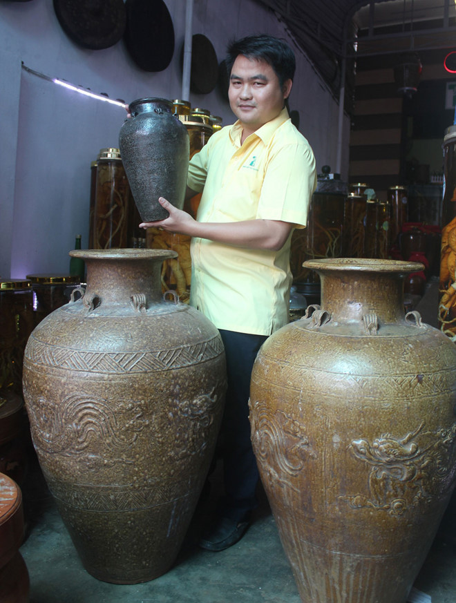 | Một phần bộ sưu tập ché cổ của Đặng Quốc Huy - Ảnh: Trung Chuyên |
