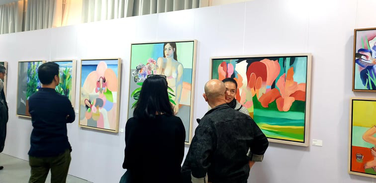 | Khai mạc triển lãm "Vườn địa đàng: Garden of unknowing" của họa sĩ Trịnh Cẩm Nhi thu hút đông đảo người quan tâm. |