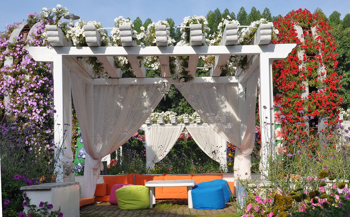 Khi cần nghỉ ngơi trong bóng râm, các cổng hoa hay những lều hoa ngay lập tức sẽ đáp ứng nhu cầu của du khách.