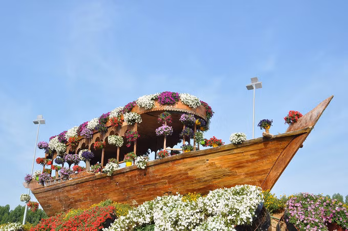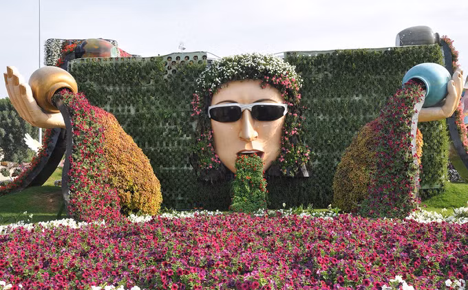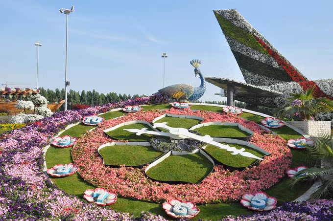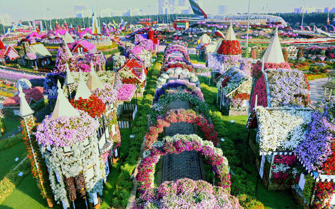 Vườn hoa Dubai Miracle có hơn 45 triệu bông phủ trên diện tích hơn 7 ha là vườn hoa lớn nhất thế giới. Không gian khu vườn luôn rực rỡ nhờ những bông hoa nhiều màu sắc. Nhưng điều khiến du khách kinh ngạc nhất là nó nằm giữa lòng sa mạc.