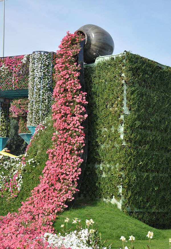 Ông Abdel Nasser Y. Rahhal đến từ công ty Dịch vụ Phong cảnh và Nông nghiệp Akar cho biết: “Để giúp những bông hoa sinh trưởng, Dubai Miracle đã lắp đặt một hệ thống tưới tiêu có thể tái sử dụng nước thải nhờ phương pháp tưới nhỏ giọt, sử dụng những vật liệu như thảm thấm nước, ống nhựa để giữ và phân tán nước.”
