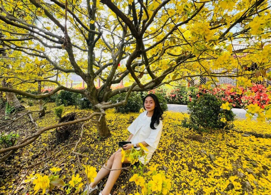 "Đây là lần đầu tiên mình thấy một vườn mai "khủng", nở rộ vàng rực như thế. Khi được nhìn những cây mai thật bên ngoài mình thấy đẹp gấp nhiều lần trong clip trên mạng xã hội. Chủ vườn rất vui tính, nhiệt tình đón tiếp nên mọi người tha hồ chụp hình với vườn mai", Hồng Ánh nói.