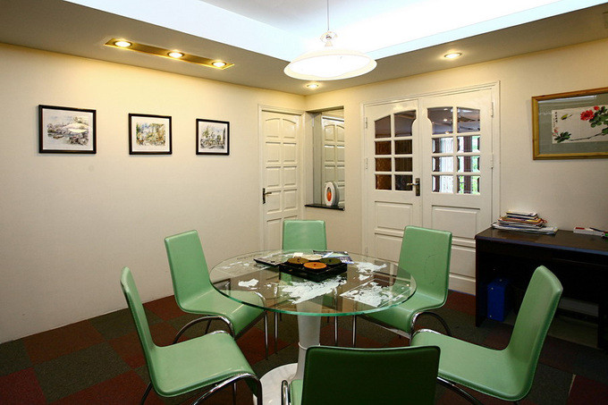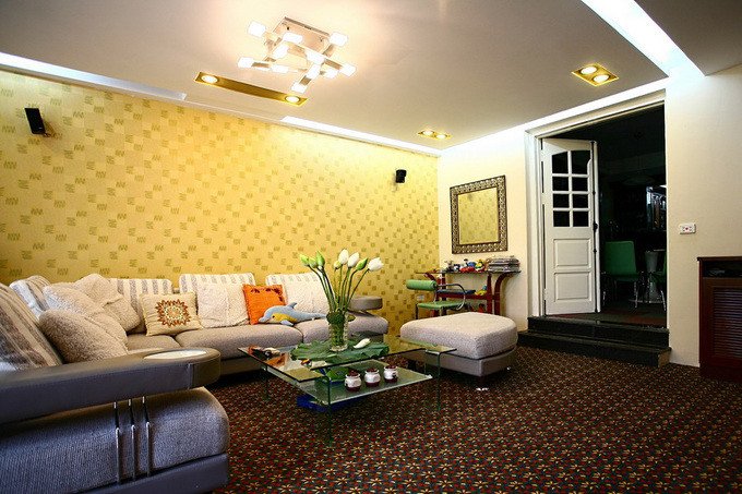 Phòng khách được ngăn cách với phòng ăn bằng một lớp cửa. Chủ nhà là người làm kinh doanh và nhà ở cũng là nơi làm việc nên luôn có nhiều khách. Sự ngăn cách là cần thiết để đảm bảo riêng tư. Vì là công trình cải tạo nên khá nhiều đồ đạc nội thất được chủ nhà và kiến trúc sư cân nhắc giữ lại. Chiếc bàn nhỏ kế bên cửa vốn là bàn trang điểm nay trở thành bàn trang trí, tạo điểm nhấn cho căn phòng.