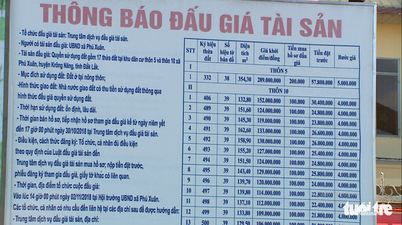 Nhiều lô đất chờ bán đấu giá mấy năm nay nhưng xã Phú Xuân vẫn chưa bán được - Ảnh: TRUNG TÂN