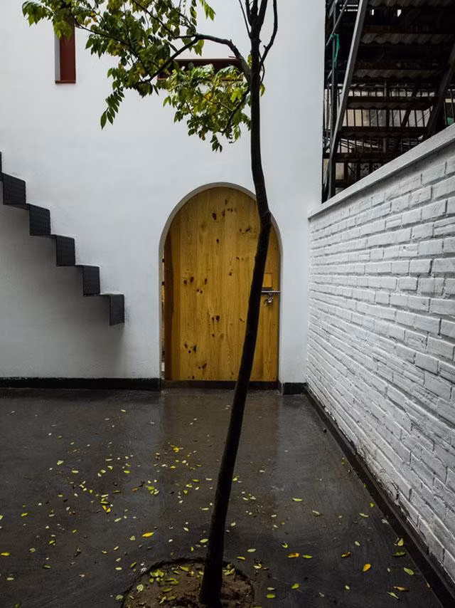 Cổng vào dạng vòm mang phong cách truyền thống dân dã.