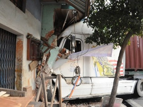 Sau đó, chiếc container bị mất lái, lao ra khỏi phần đường Quốc lộ 1 tiếp tục đâm sập hoàn toàn căn nhà phụ và phần trước căn nhà chính của gia đình anh Tô Thế Vũ (sinh năm 1984, ở thôn Phong Phú, xã An Hiệp, huyện Tuy An, tỉnh Phú Yên).