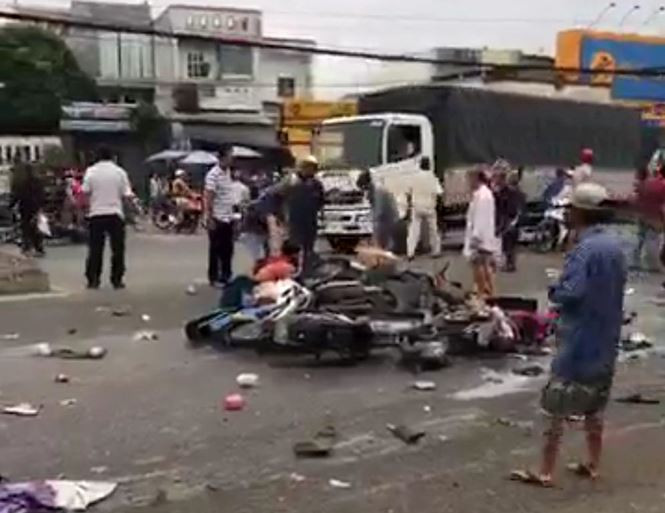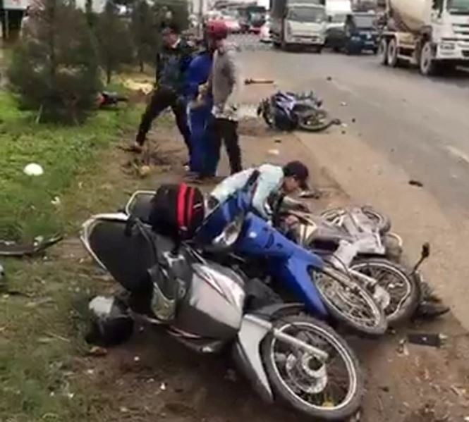 Không dừng lại, chiếc xe container cuốn nhiều xe máy cùng các nạn nhân vào gầm kéo lê một đoạn dài trên đường. Tai nạn khiến nhiều người thương vong, hàng loạt xe máy bị nghiền nát.