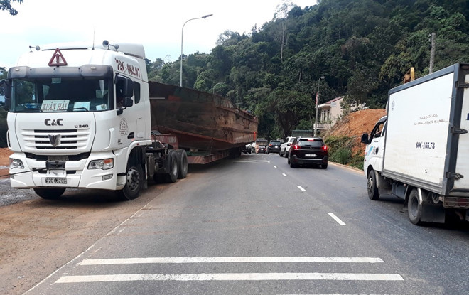 Tuy nhiên, do chiếc xe chở thuyền “khủng” liên tục bị vướng các khúc cua khiến giao thông trên đèo Bảo Lộc ách tắc cục bộ kéo dài nhiều giờ.