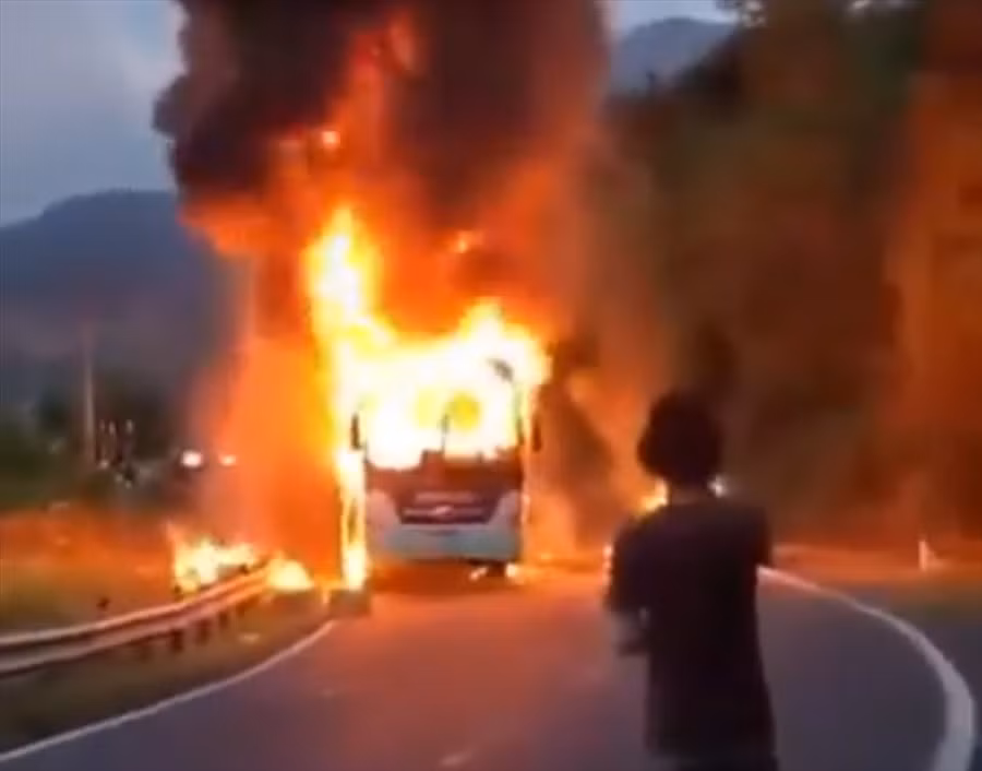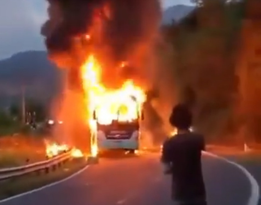 Xe khách chở 48 người bốc cháy dữ dội trên đường Đà Lạt đi Nha Trang